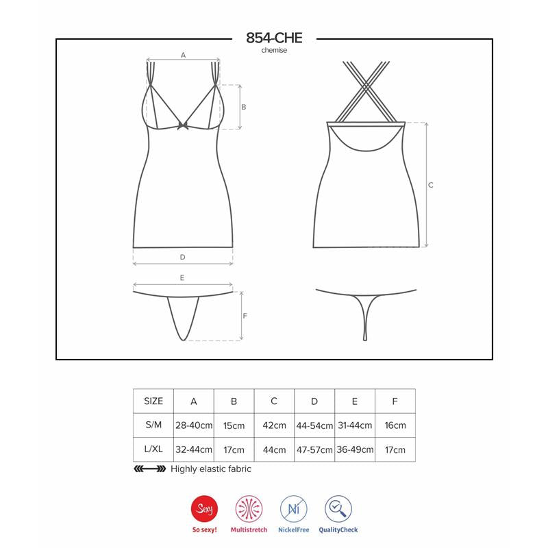 A semi-transparent black mesh fabric, a sensual lace and strips at the back to give your night a very spicy touch. In the cups and at the bottom of the chemise you can enjoy a lace with floral motifs, and the straps are divided into three strips, more sensual impossible.